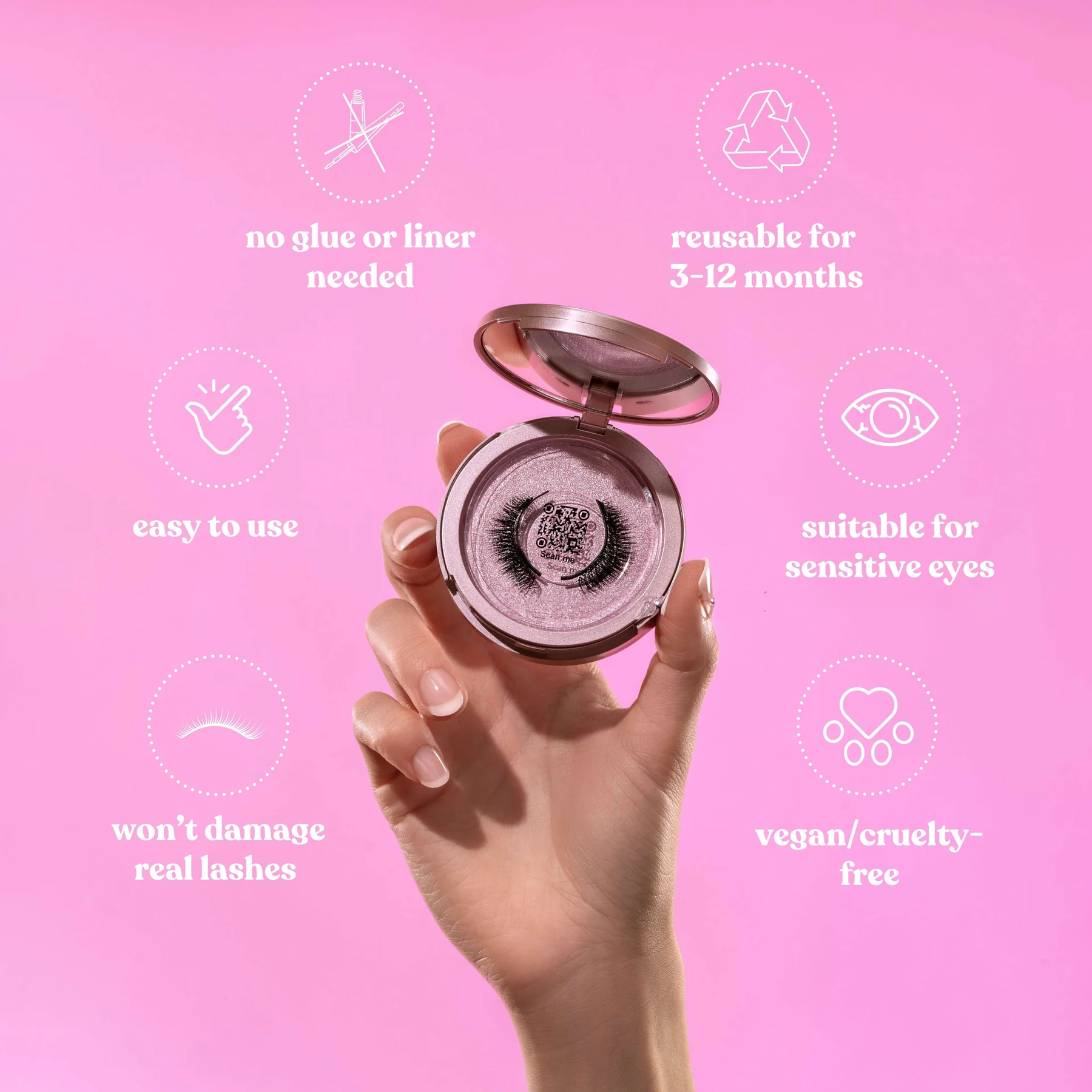 A: Just place the magnetic lash strip above your natural lashes and let the micro-magnets click into place — no glue, no mess!